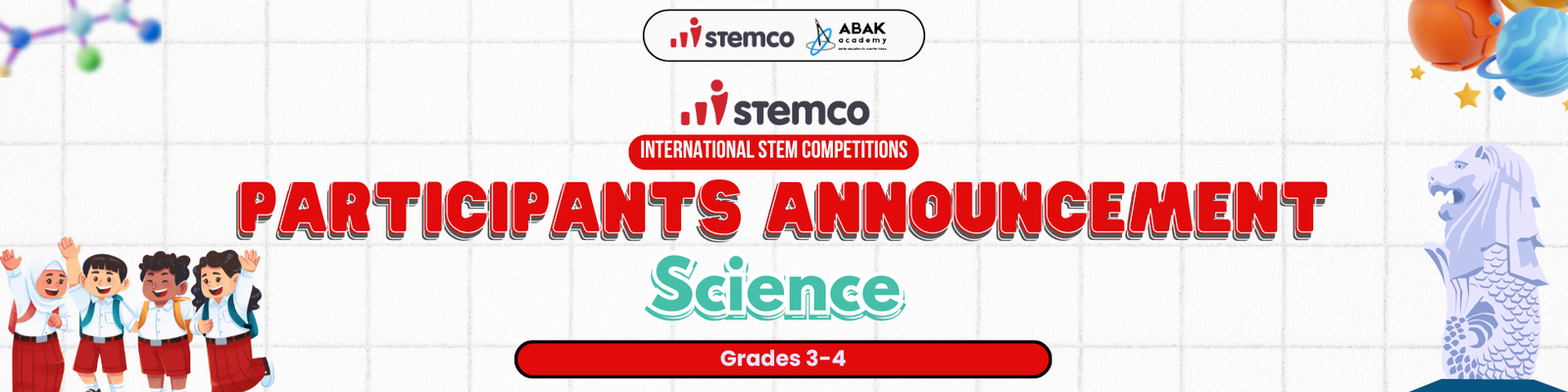 | 10 | Banten | 26SB04001 | Grade 3 - 4 Science | Abraham Junior Guo | Grade 3 Elementary School | STELLA MARIS SCHOOL GADING SERPONG | AbrahamJuniorGuo | AbakAcademy@123 |