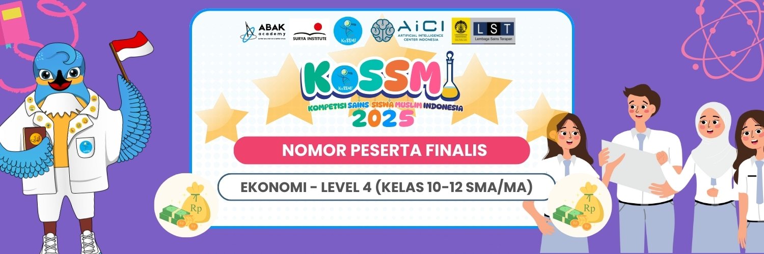 056FEKO25-4-056Yusuf Al QardhawiMAN INSAN CENDEKIA ACEH TIMUREKONOMI Level 4 / Ibnu Haitham (Kelas 10-12)Lolos 1 Bidang