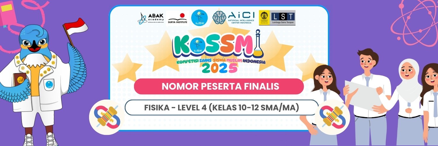 | 054 | FFIS25-4-054 | Zachwanov Daqosta Al Yusufi | MAN INSAN CENDEKIA ACEH TIMUR | FISIKA Level 4 / Ibnu Haitham (Kelas 10-12) | Lolos 1 Bidang |