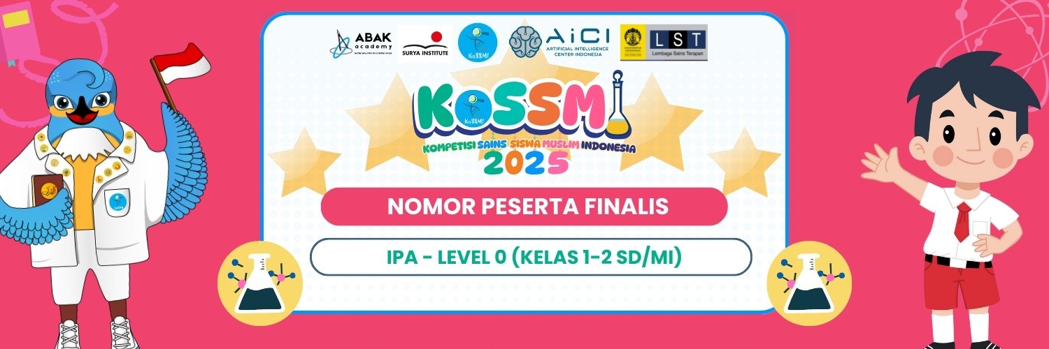 | 025 | FIPA25-0-025 | Kindi Ali Adam | SD MUHAMMADIYAH 12 PAMULANG | Ilmu Pengetahuan Alam Level 0 / Ibnu Sina (Kelas 1-2 SD/MI) | Lolos 1 Bidang |