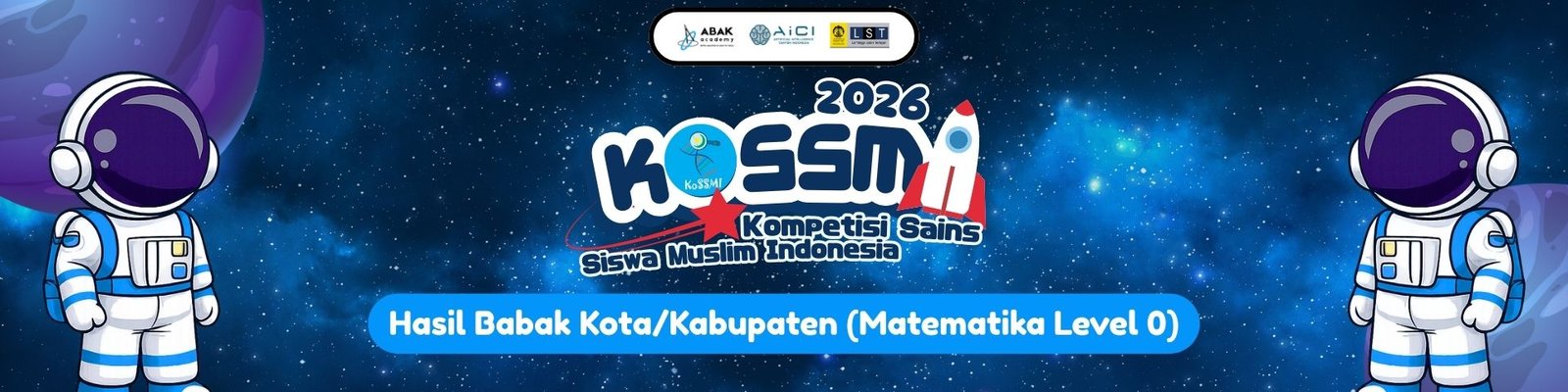 Berdasarkan sidang pleno Tim Akademik KoSSMI 2026, telah ditetapkan peserta Babak Kota/Kabupaten yang lolos ke Babak Provinsi KoSSMI 2026 sebagaimana tercantum pada lampiran pengumuman di bawah ini.