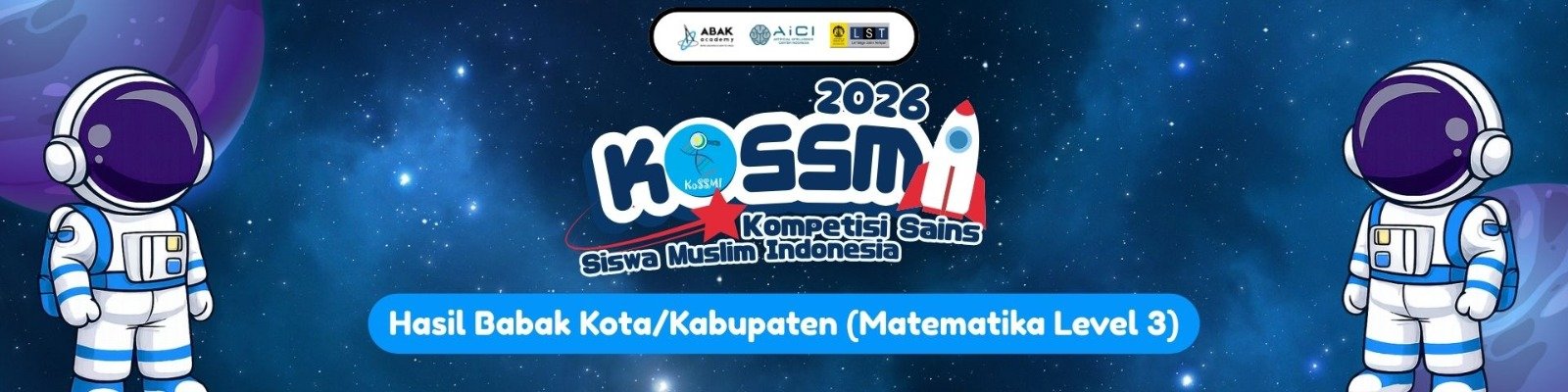 Berdasarkan sidang pleno Tim Akademik KoSSMI 2026, telah ditetapkan peserta Babak Kota/Kabupaten yang lolos ke Babak Provinsi KoSSMI 2026 sebagaimana tercantum pada lampiran pengumuman di bawah ini.